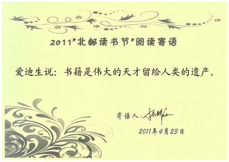 党政领导深情寄语名家名言引导阅读——2011“北邮读书节”系列报道之九