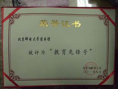北京市“教育先锋号”荣誉称号,是我馆继“BALIS馆际互借中心馆”、“全民阅读示范基地”、“BALIS原文传递学科服务馆”之后的又一殊荣,是为北京邮电大学送上的一份厚重的教师节礼物!全体馆员将以此为契机,弘扬和实践“追求卓越 崇尚奉献”的核心价值观,营造和谐、服务育人,力争为学校的改革和发展做出更大的贡献。
