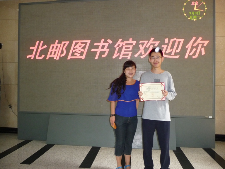 由北京策腾文化传播有限公司主办、面向北京高校大学生的“第二届图书馆杯北京大学生英语口说大赛”已经落下帷幕。继2012年我校孙佳轩同学获得了二等奖、我校图书馆获得了“最佳组织奖”之后,2013年我校学子再获佳绩。信息与通信工程学院代翔鲲同学获得了三等奖,自动化学院王志昊同学和信息与通信工程学院史婧聪同学获得了优秀奖。