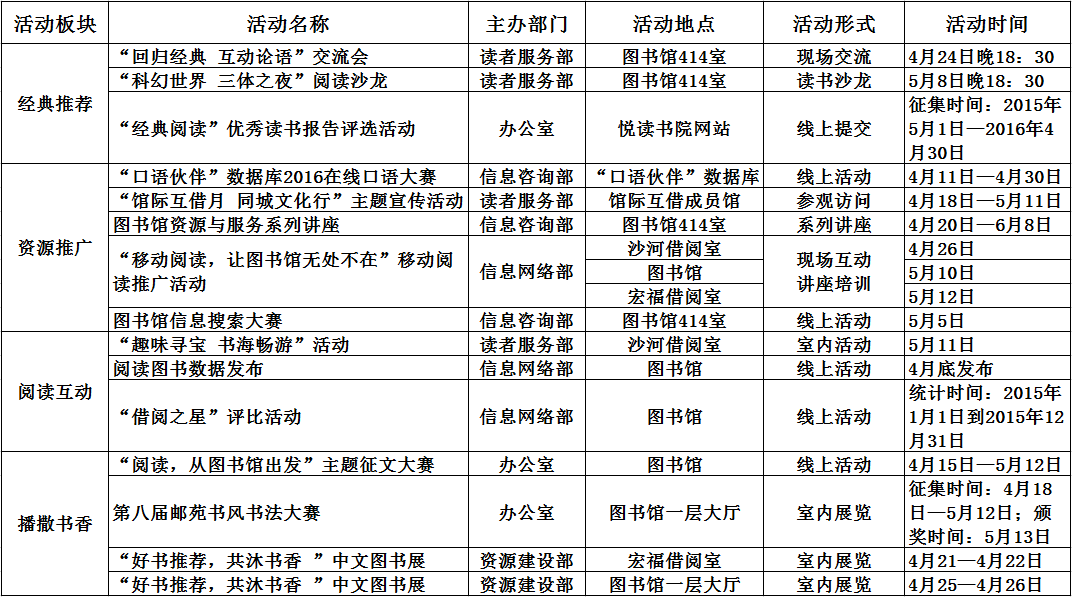 2016年“北邮读书节”系列活动预告