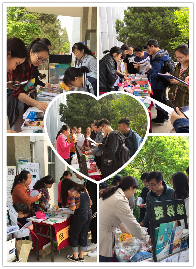 为了让广大师生充分了解图书馆购置的数字资源,提高数字资源的使用效率,4月22日和23日图书馆咨询部在图书馆门口举办了数字资源推广活动。