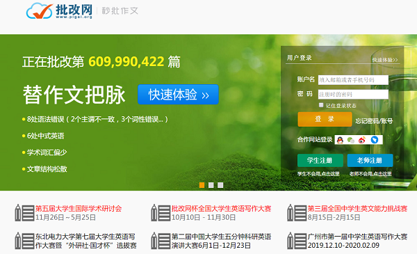 句酷批改网(www.pigai.org)是英语作文自动批改在线服务系统,旨在提高学生的英语写作能力,提高老师批改英语作文的工作效率。