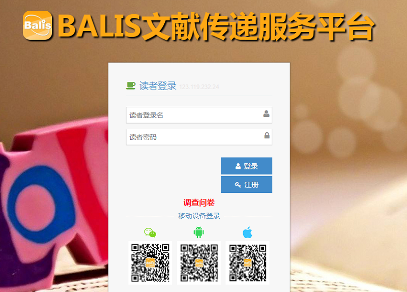 1、从图书馆主页进入:图书馆主页----读者服务----原文传递----BALIS原文传递系统