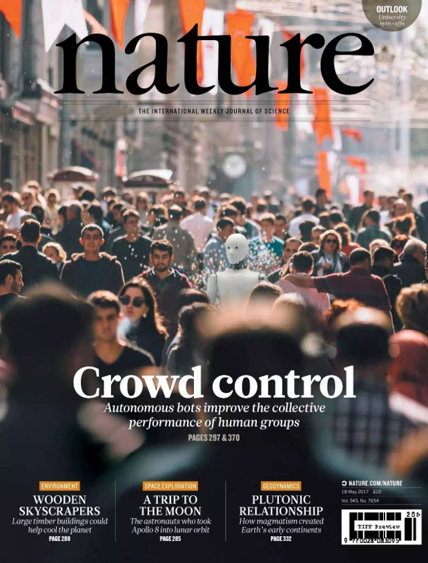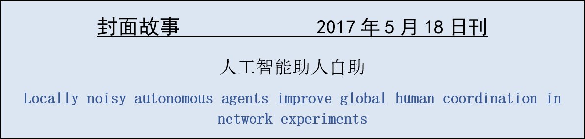 即使每个人的利益都是一致的,一个群体的集体行动也面临着“协调”问题:个体试图达成对他或她本人最优的解决方案,但这样的方案对全体来说或许不是最优的。在本期杂志中,Nicholas Christakis 和白土宽和(Hirokazu Shirado)利用自主软件(即人工智能)代理或“机器人”展示了这一问题的一个潜在解决方案。他们将简单的机器人引入了一个由人类组成的小型网络中,从而创建了一个由人类和机器人组成的“异构系统”。