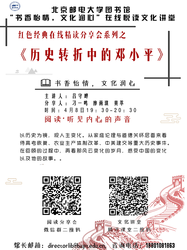 图书馆“书香怡情 文化润心”系列活动预告——“《历史转折中的邓小平》在线阅读分享会”