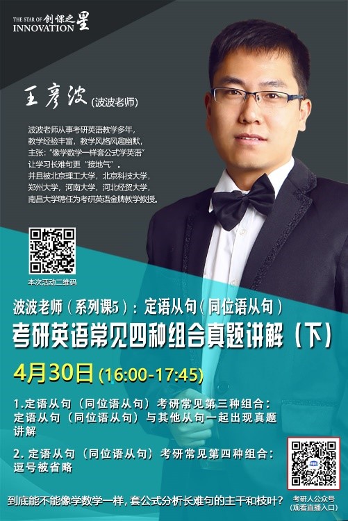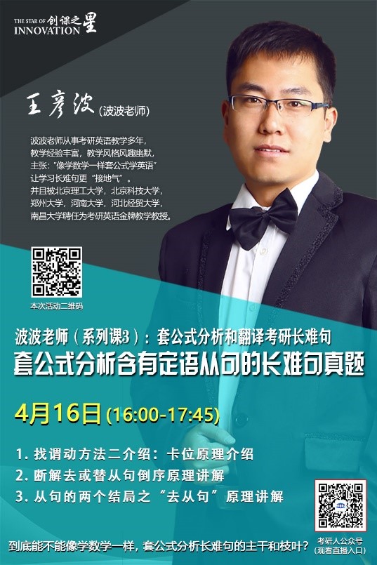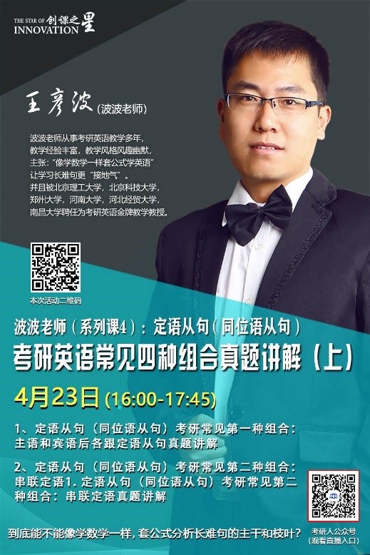 创课之星——考研英语长难句系列课4月讲座安排