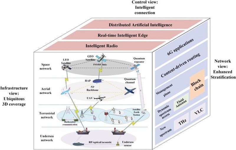 随着5G在全球范围内逐步扩大商业版图,研究人员已经开始将目光投向6G,来探讨未来的通信需求及应对方法。如同5G带来了全新的网络架构和部署理念一样,6G同样会做出前所未有的突破,将传统的地面移动网络与新兴的空间、空中和水下网络结合起来,提供全方位的网络覆盖以及满足更多应用的需求。6G所带来的新技术架构的变化,不仅包含了无处不在的3D覆盖、普及型人工智能以及增强的网络协议栈,太赫兹、可见光通信、新的通信范式、区块链和共生无线电也作为可被6G融合的技术备受关注。