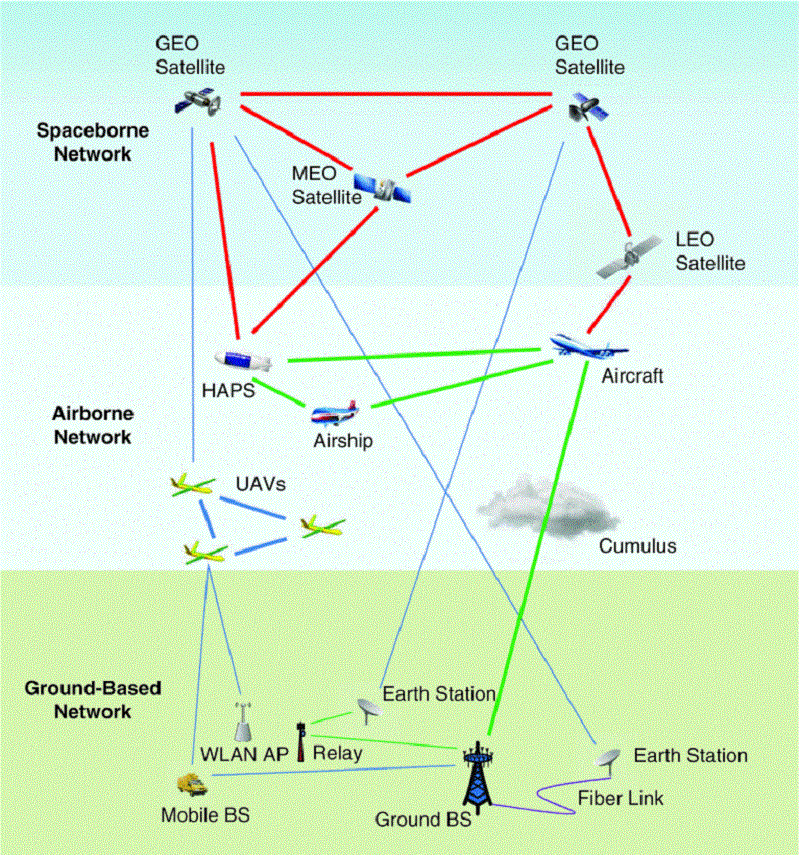 图3 空地组网连接不同的通信制式和网络节点