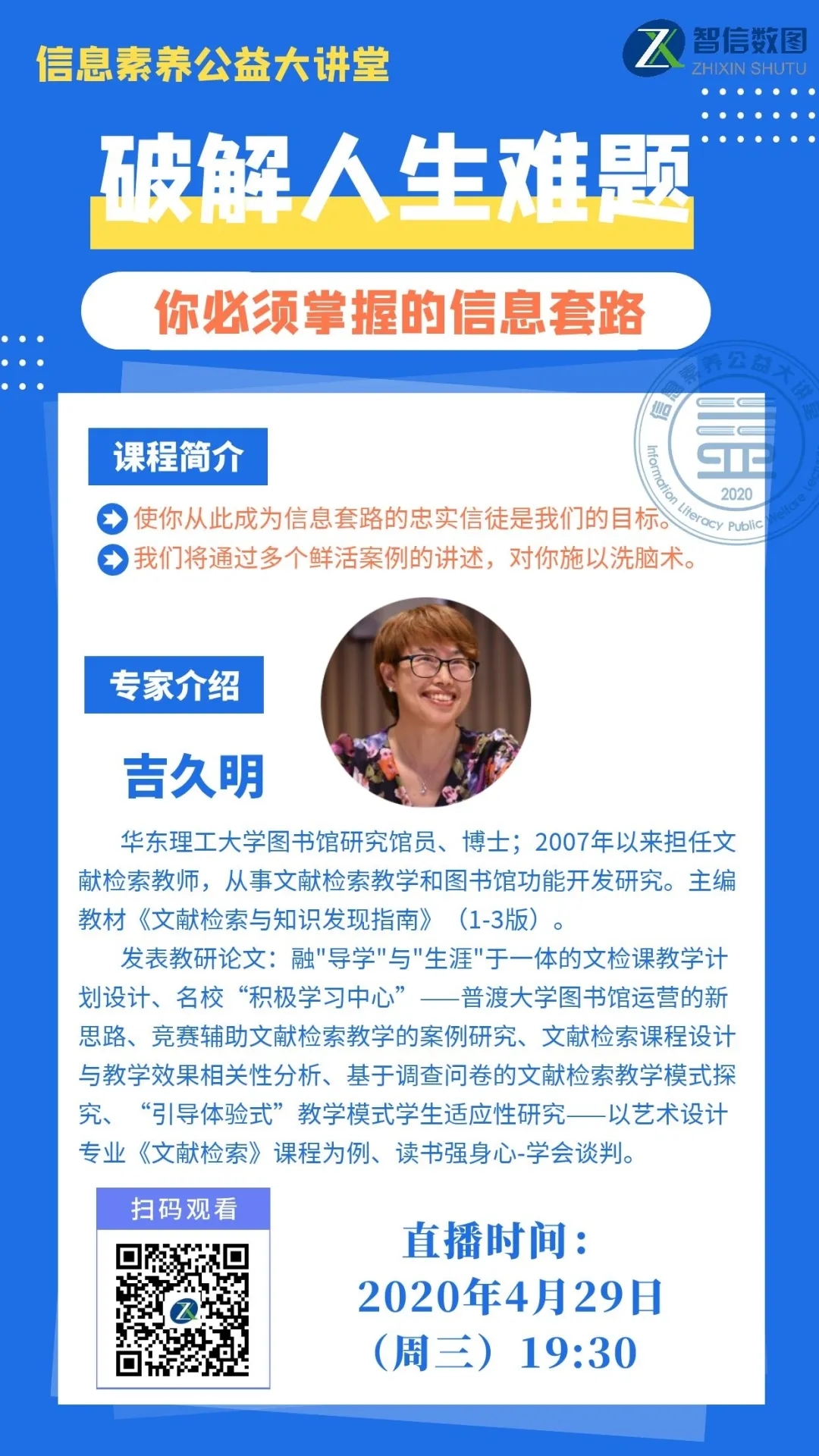 信息素养公益大讲堂系列讲座——破解人生难题,你必须掌握的信息套路