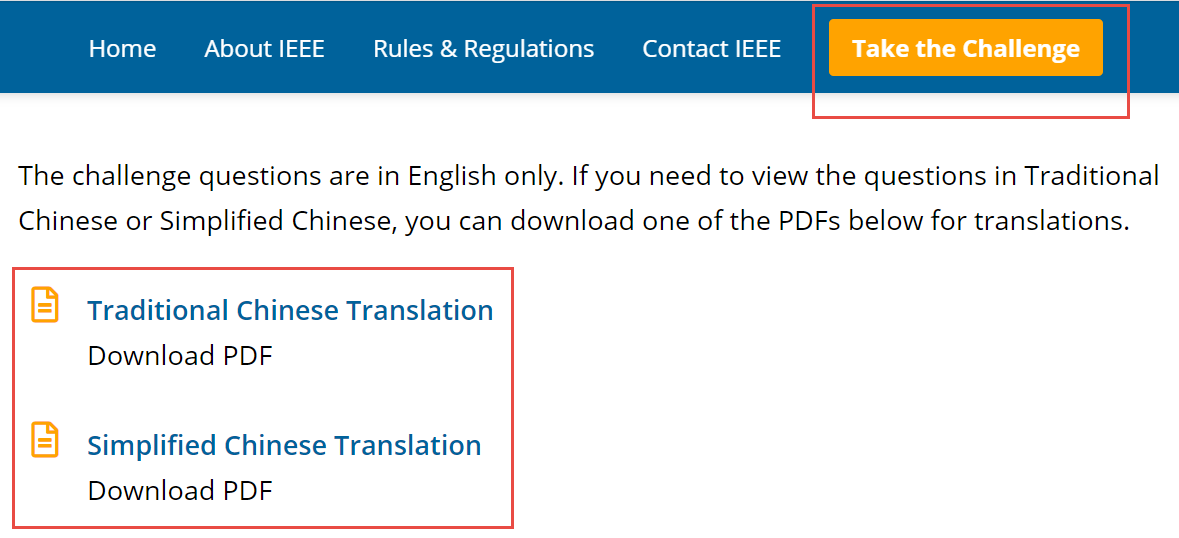 2. 点击Take the Challenge填写个人信息与答题,并可在该页面下载挑战赛题目中文翻译