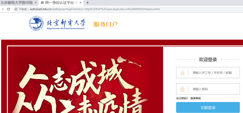 三、进入学校的统一身份认证的页面后,输入学号和密码。