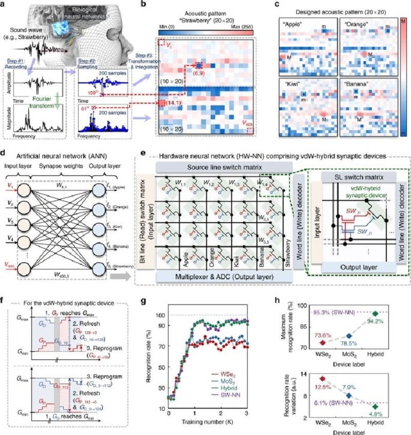 Artificial van der Waals hybrid synapse and its application to acoustic pattern recognition