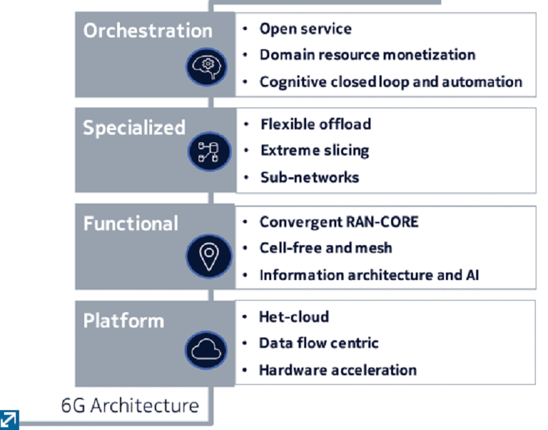 The post-pandemic future will offer tremendous opportunity and challenge from transformation of the human experience linking physical, digital and biological worlds: 6G should be based on a new architecture to fully realize the vision to connect the worlds. We explore several novel architecture concepts for the 6G era driven by a decomposition of the architecture into platform, functions, orchestration and specialization aspects. With 6G, we associate an open, scalable, elastic, and platform agnostic het-cloud, with converged applications and services decomposed into micro-services and serverless functions, specialized architecture for extreme attributes, as well as open service orchestration architecture. Key attributes and characteristics of the associated architectural scenarios are described. At the air-interface level, 6G is expected to encompass use of sub-Terahertz spectrum and new spectrum sharing technologies, air-interface design optimized by AI/ML techniques, integration of radio sensing with communication, and meeting extreme requirements on latency, reliability and synchronization. Fully realizing the benefits of these advances in radio technology will also call for innovations in 6G network architecture as described.