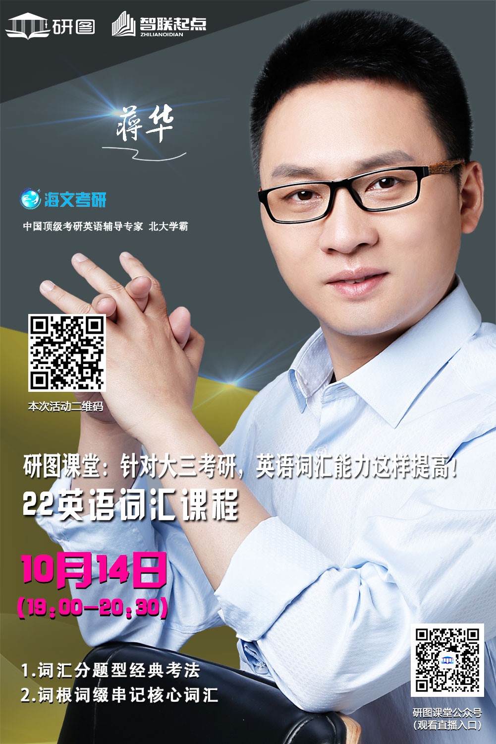| 2020年10月14日19:00-20:30 | 22届考研英语词汇课程 | 蒋华 |