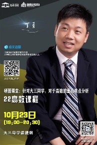 | 2020年10月23日19:00-20:30 | 22届考研数学高数课程 | 丁勇 |