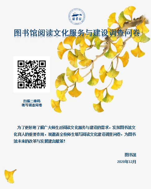 为了更好地了解广大师生对阅读文化服务与建设的需求,发挥图书馆文化育人的重要作用,现邀请全校师生填写阅读文化建设调查问卷,为图书馆未来的改革与发展建言献策!