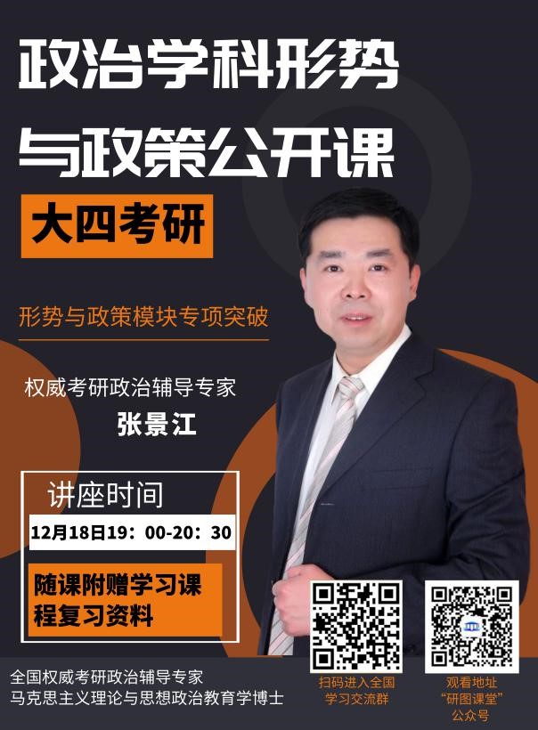4、张景江:全国权威考研政治辅导专家,马克思主义理论与思想政治教育学博士,教授,博士生导师,考研政治阅卷组组长,连续23年从事高校思想政治教育和考研政治的命题与试题研究工作。