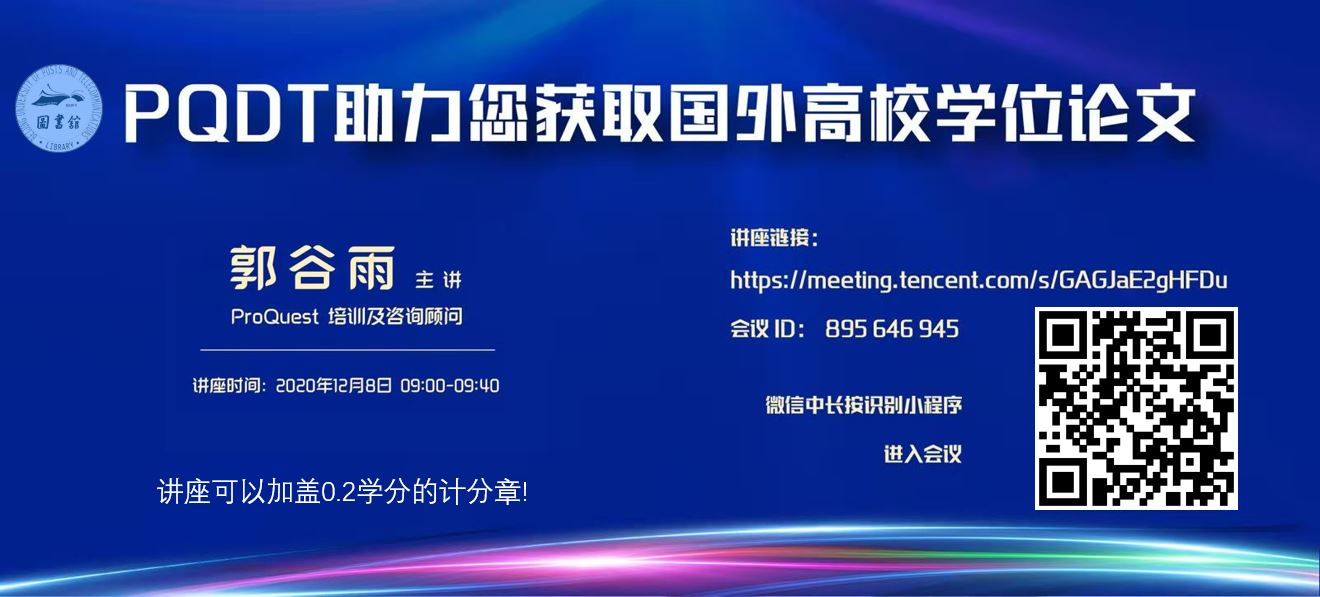 PQDT助力您获取国外高校学位论文此次讲座可以加盖0.2学分的计分章!欢迎同学们积极参加!