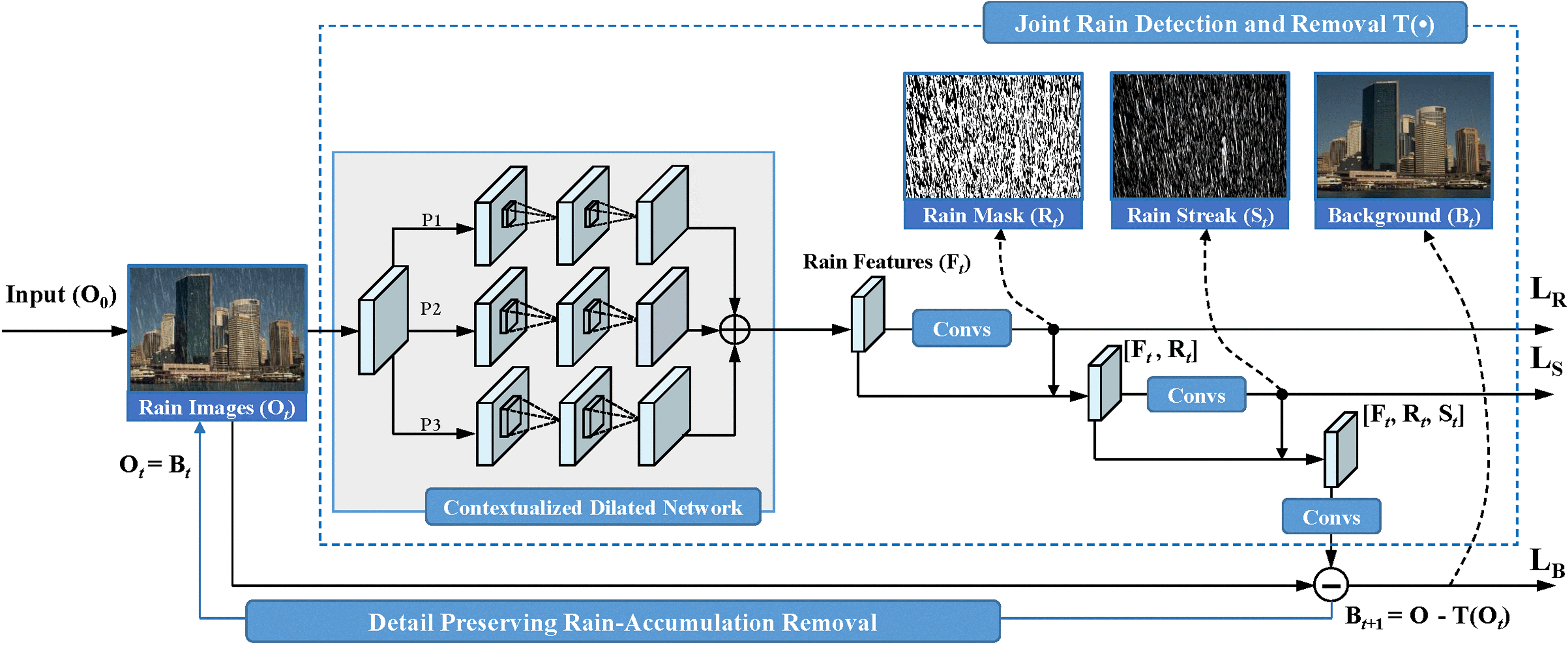 The architecture of the recurrent joint rain detection and removal method