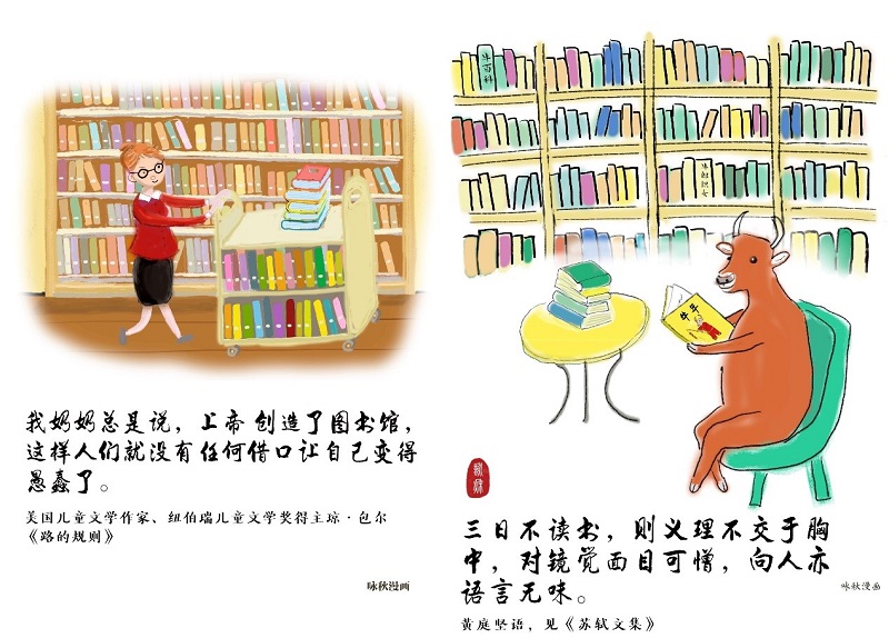 习近平总书记指出,图书馆是滋养民族心灵、培育文化自信的重要场所。为此,图书馆特在2021年北邮图书节期间推出“阅读为我赋能”阅读推广手绘海报展。海报展由国家图书馆出版社邓咏秋博士供稿,旨在营造爱读书、读好书、善读书的良好风尚,助力“书香校园”建设 !