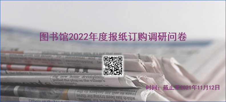 图书馆2022年度报纸订购工作即将开始,为优化报纸种类、满足读者需求,更好地为师生服务,现诚邀广大师生对我馆现有报纸种类进行评价,并推荐具有较高阅读价值的我馆未订购的优秀报纸,为我馆2022年度报纸订购提供参考。