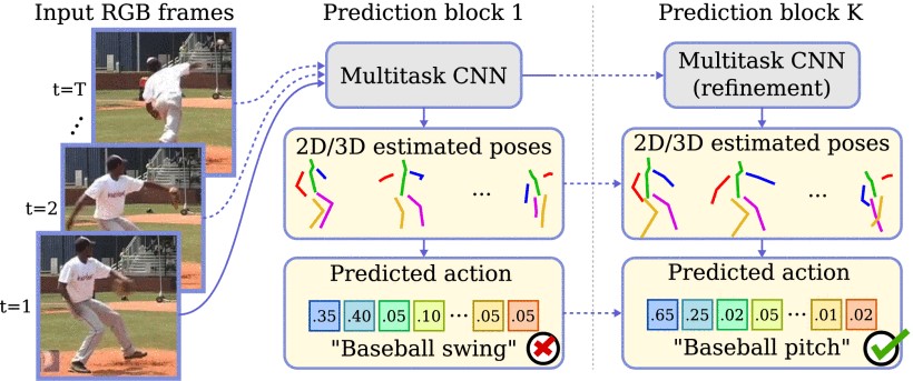 The end-to-end trainable multi-task approach for human pose estimation and action recognition