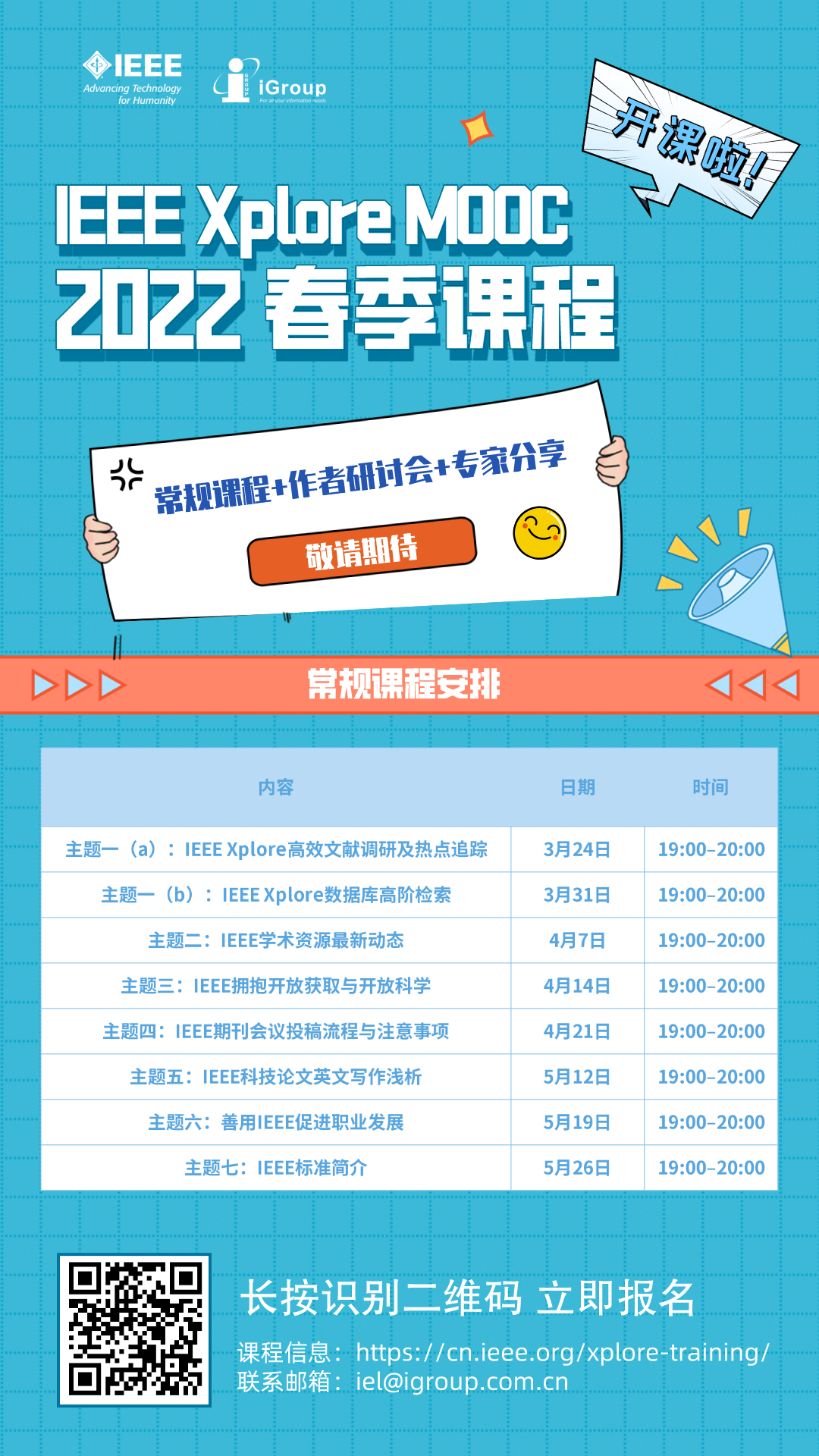 | 主题二:IEEE 学术资源最新动态 | 04月07日,19:00–20:00 |