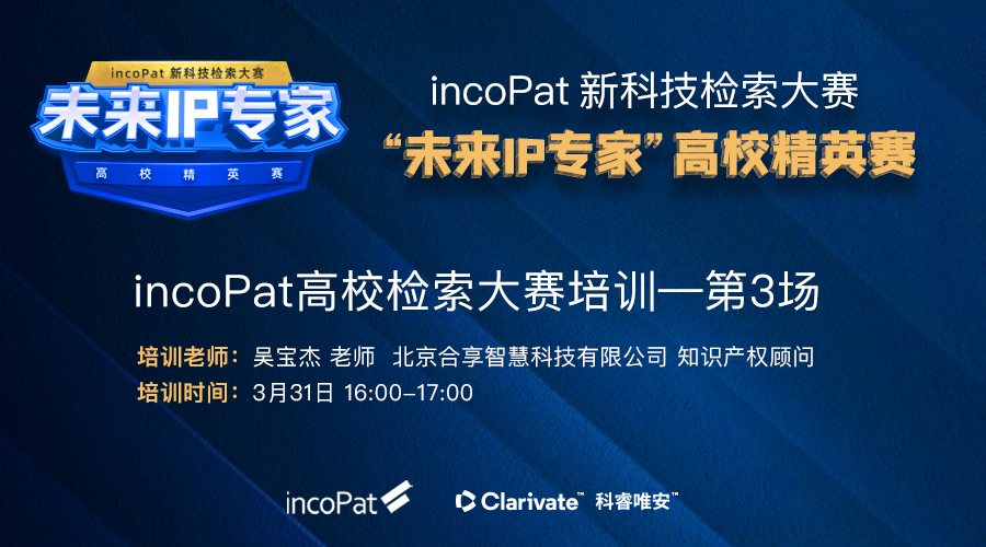 第四届incoPat新科技检索大赛——“未来IP专家”高校精英赛已经正式启动,欢迎校园检索精英们踊跃报名参加哦!