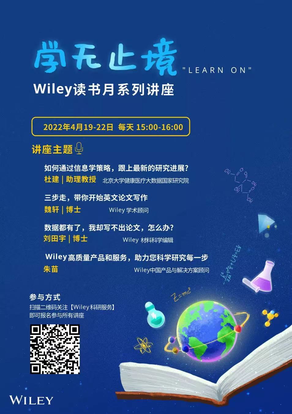 参与方式:扫描海报下方二维码,关注Wiley科研服务后可报名参与系列讲座,会在讲座开始前为您发送开课提醒。