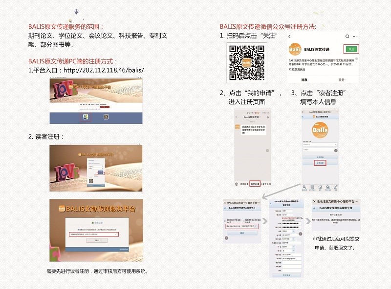 BALIS原文传递的服务范围和注册使用方法如下图所示,欢迎大家使用BALIS原文传递系统!