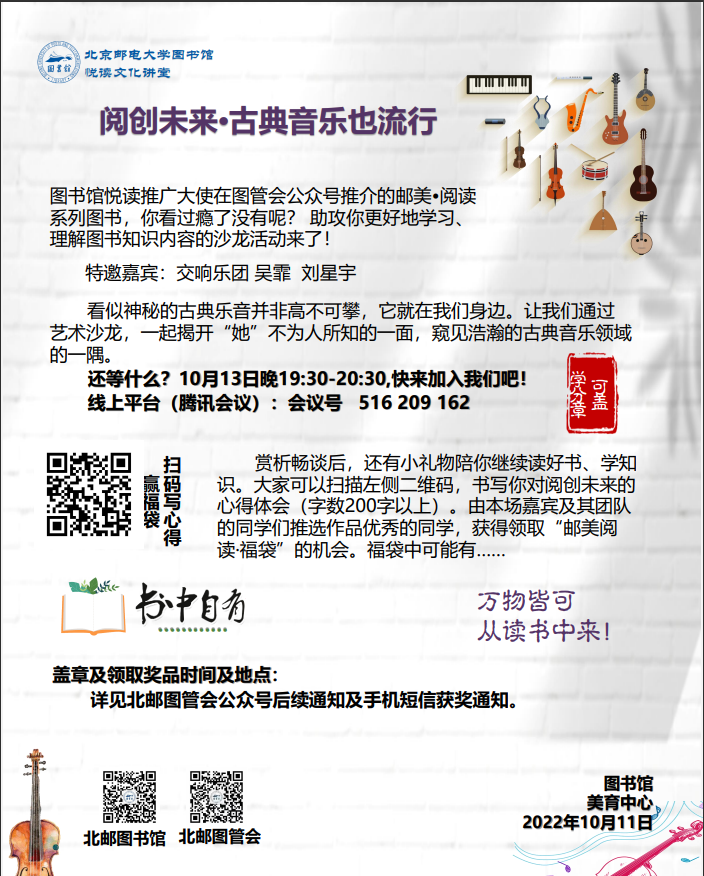 图书馆悦读文化讲堂系列:阅创未来之古典也流行,文化艺术沙龙通知