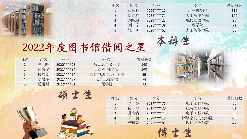 2022年度图书馆达人排行榜暨阅读之星评选公布——2023年“北邮读书节”系列活动之一